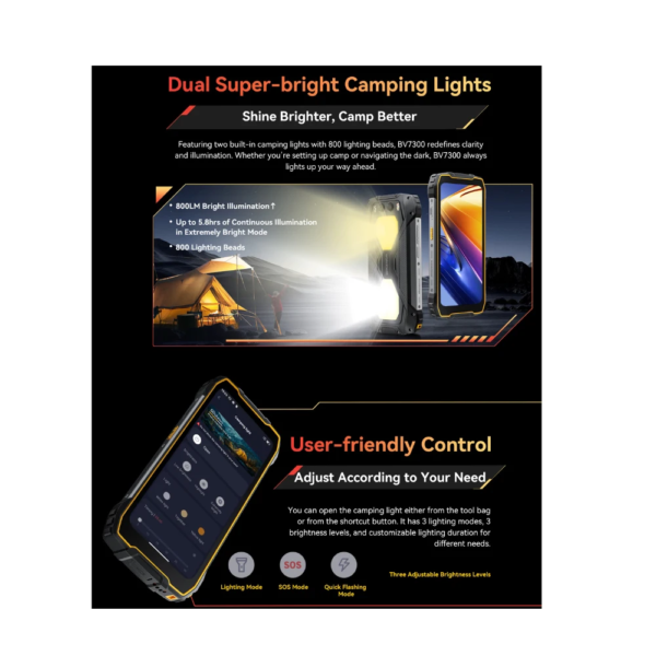 Blackview BV7300 – Luz de camping | 18 GB (6GB + 12GB) RAM + 256 GB ROM
