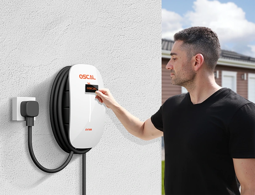 El OSCAL EV7000 es un cargador residencial para vehículos eléctricos diseñado para ofrecer rendimiento, seguridad y control completos. Con una potencia máxima de 7 kW y una salida de 32 A, puedes recargar una batería de 50 kWh en aproximadamente 7 horas, el doble de rapidez que con cargadores de 3,5 kW estándar.