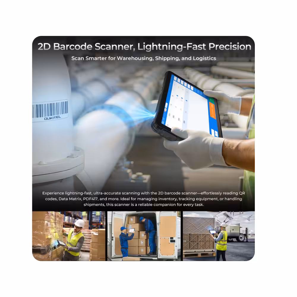 La OUKITEL RT10 Industry incorpora un lector de códigos de barras 2D profesional, permitiendo escanear productos de forma rápida y precisa sin necesidad de dispositivos adicionales. Esto la convierte en una herramienta ideal para: logística, almacenes, inventario, retail, gestión de activos, transporte y distribución. Reduce errores, acelera procesos y mejora la productividad en el día a día. Mediante la App Pro Scan, lee sin esfuerzo códigos QR, Data Matrix, PDF417 y mucho más.