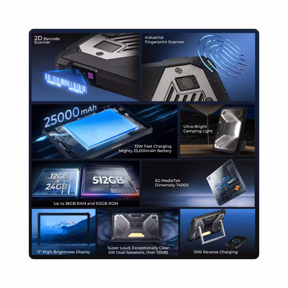 Equipada con procesador MediaTek Dimensity 7400X, junto a 12 GB de RAM ampliable virtualmente hasta 36 GB y 512 GB de almacenamiento, esta tablet permite ejecutar aplicaciones empresariales, gestión de datos y multitarea sin problemas. Además, admite expansión de almacenamiento mediante microSD para manejar grandes volúmenes de datos.