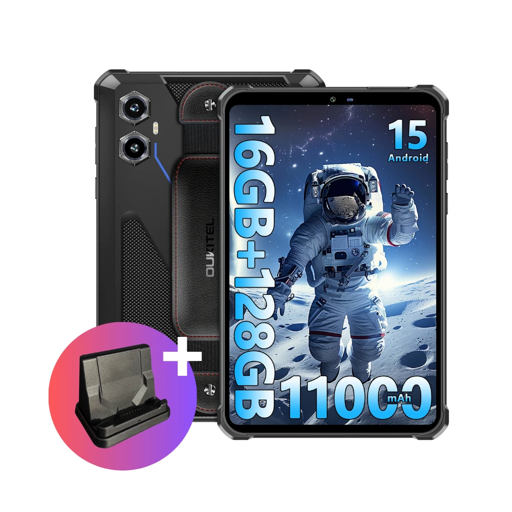 Ultrarresistente con certificaciones IP68, IP69K y MIL-STD-810H, cuenta con una pantalla de 8″ HD con un brillo de 420 nits, para una visión clara de los contenidos incluso en entornos abiertos. Además, incorpora un potente procesador MediaTek G81, sistema operativo Android 15, 4 GB de RAM ampliable virtualmente hasta 16 GB y 128 GB de ROM. Su batería de 11 000 mAh ofrece una autonomía sobresaliente y es compatible con carga inversa, es decir, puede funcionar como un banco de energía para cargar otros dispositivos.