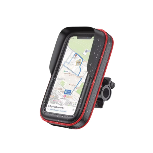 Soporte de bici impermeable para teléfono móvil convencional o móviles todoterreno/resistentes y de pantallas hasta de 6,5 pulgadas.